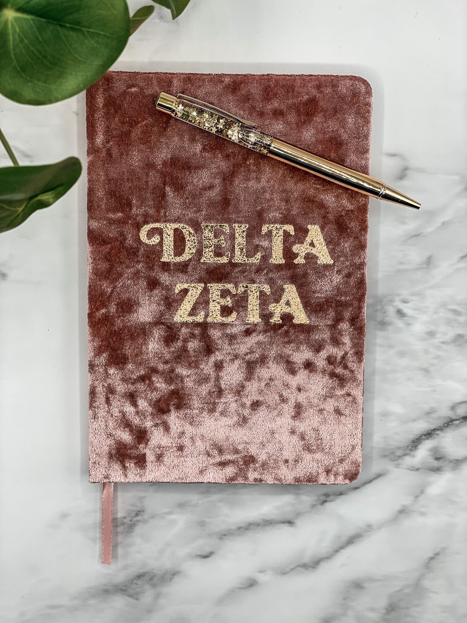 Delta Zeta Velvet Notebook with Gold Foil Imprint