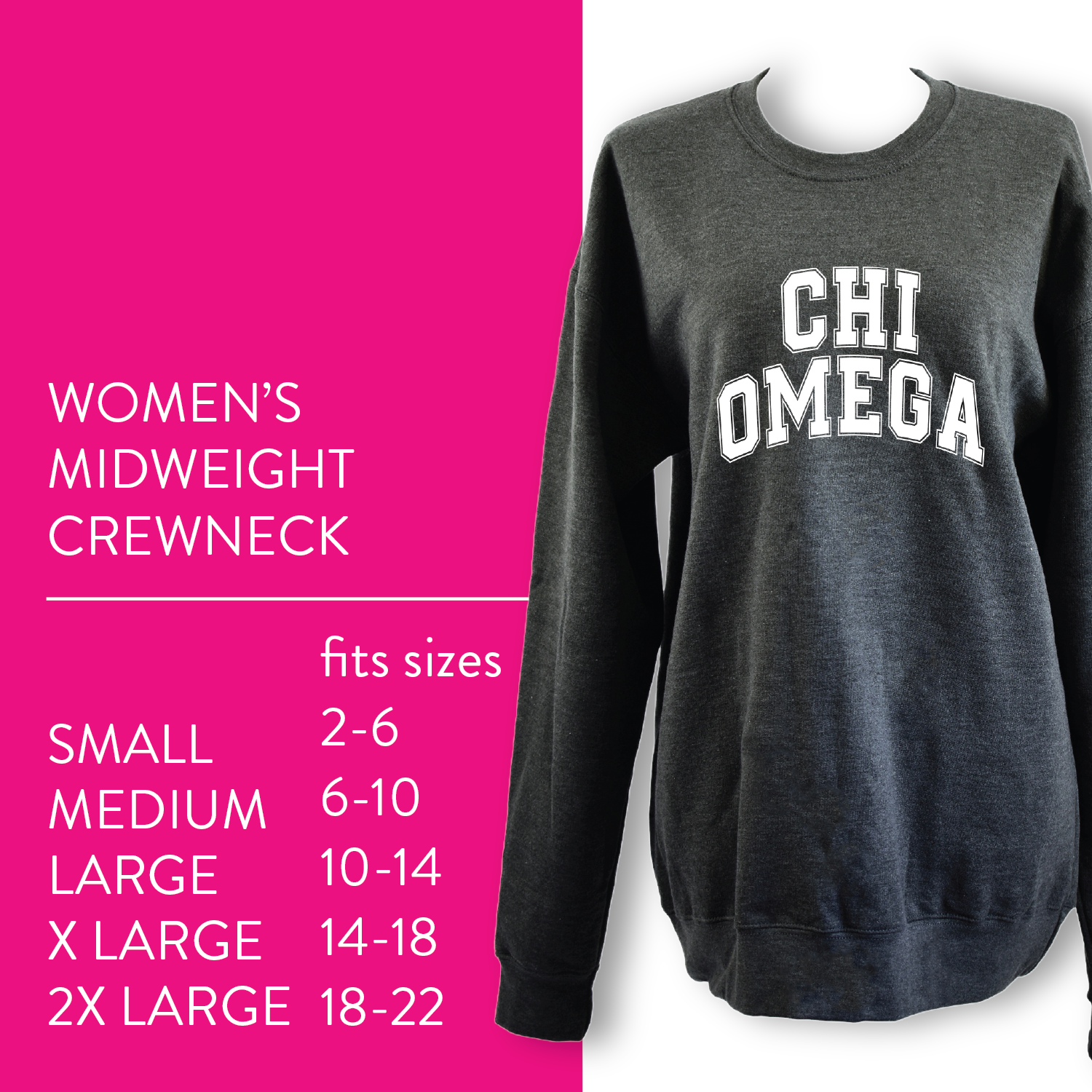 Show your Alpha Chi Omega pride with our officially licensed super soft fleece crewneck sweatshirt featuring a durable Varsity Letters DTF transfer design.