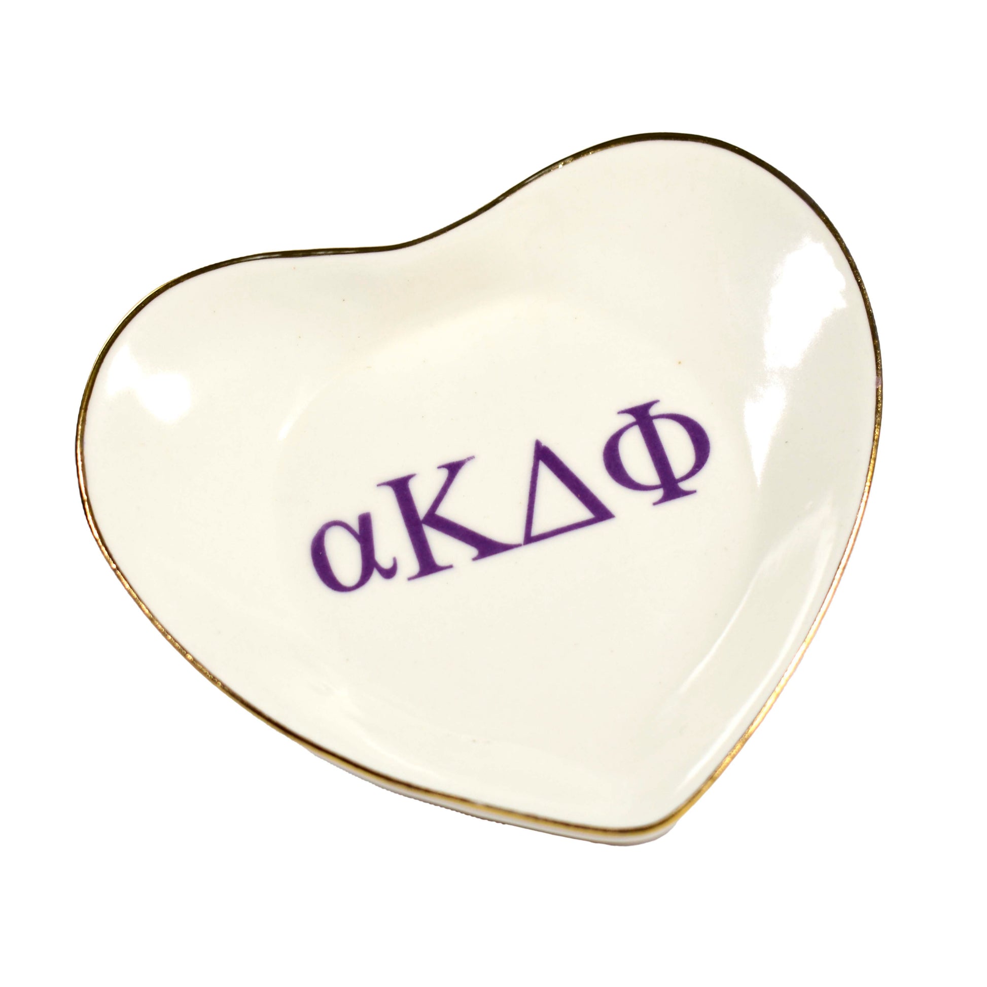 Our Alpha Kappa Delta Phi ceramic ring dish is the definition of chic with its high gloss finish and sorority name, heart and edge in gold. Great for rings, jewelry, keys or trinkets. Perfect for home or office!