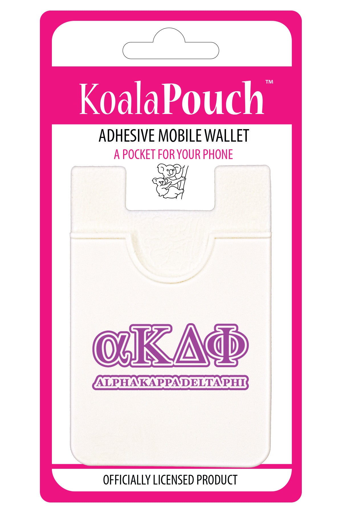 Show your sorority pride with the Koala Pouch, adhesive cell phone wallet, the perfect solution for the multitasker on the go! Keep all of your valuables safe and secure in one place while reducing the amount of items you routinely carry. The Koala Pouch will securely hold up to 3 cards at a time and helps you with gripping your device as well.
