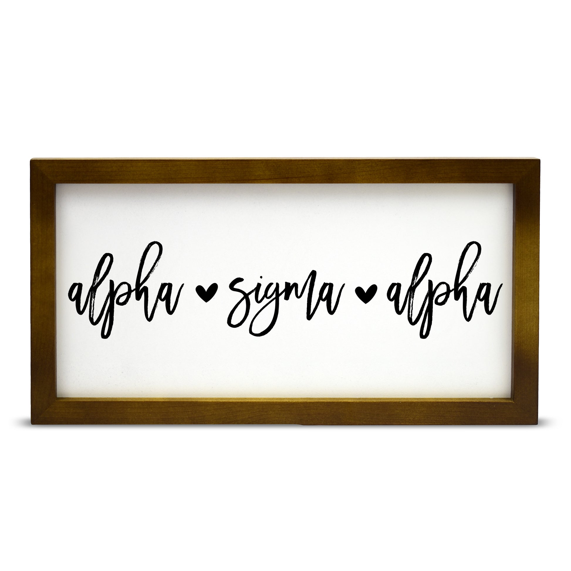 Add Sorority Spirit to your décor with our Sorority Script Large Wall Art! Each wooden sign features a brushstroke script with heart detailing on canvas and bordered with a wooden frame. A great item for yourself or to give as a gift, our wooden sign makes the perfect statement piece for your dorm or sorority house!