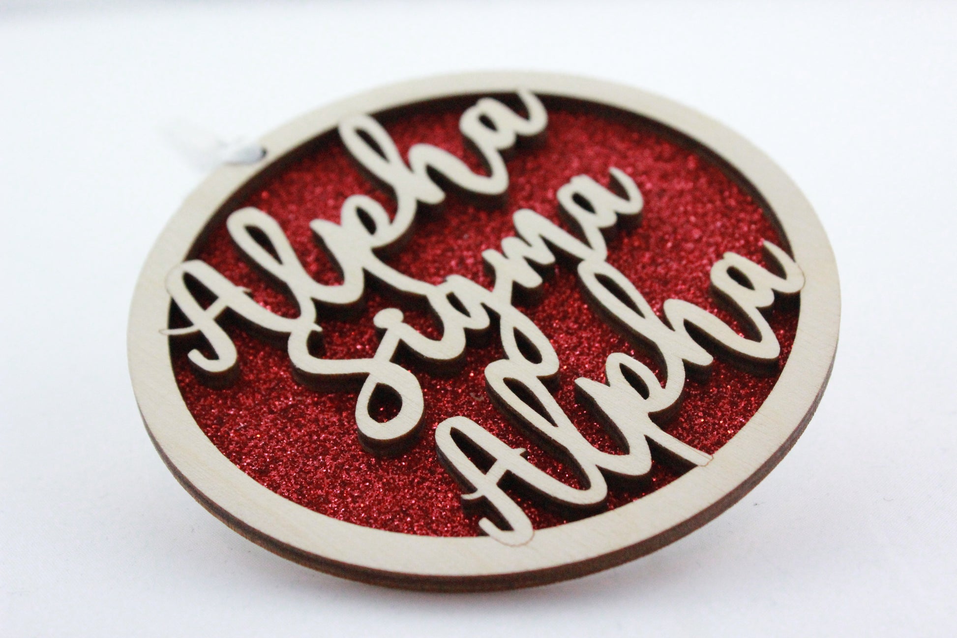 Available in Greek Letter or Script Name designs. These Ornaments are the perfect way to celebrate your Sorority Sisterhood. Laser carved out of wood and set against a sparkly background, they are guaranteed to get your spirit going. Perfect as a holiday decoration for home, dorm, or even your car!