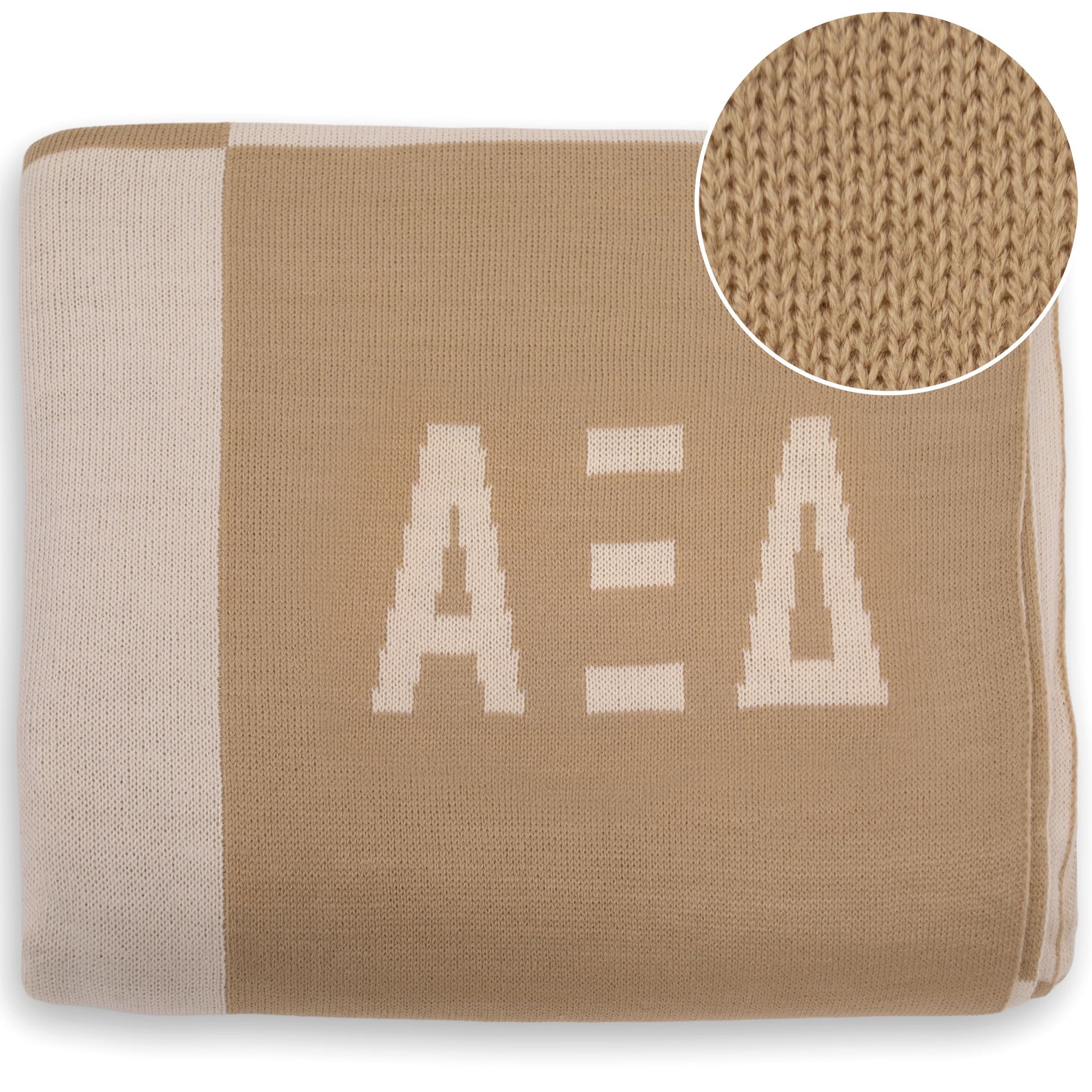 Snuggle up in style and showcase your Alpha Xi Delta sisterhood with our irresistibly soft and lightweight biscotti and pearl ivory throw blanket.