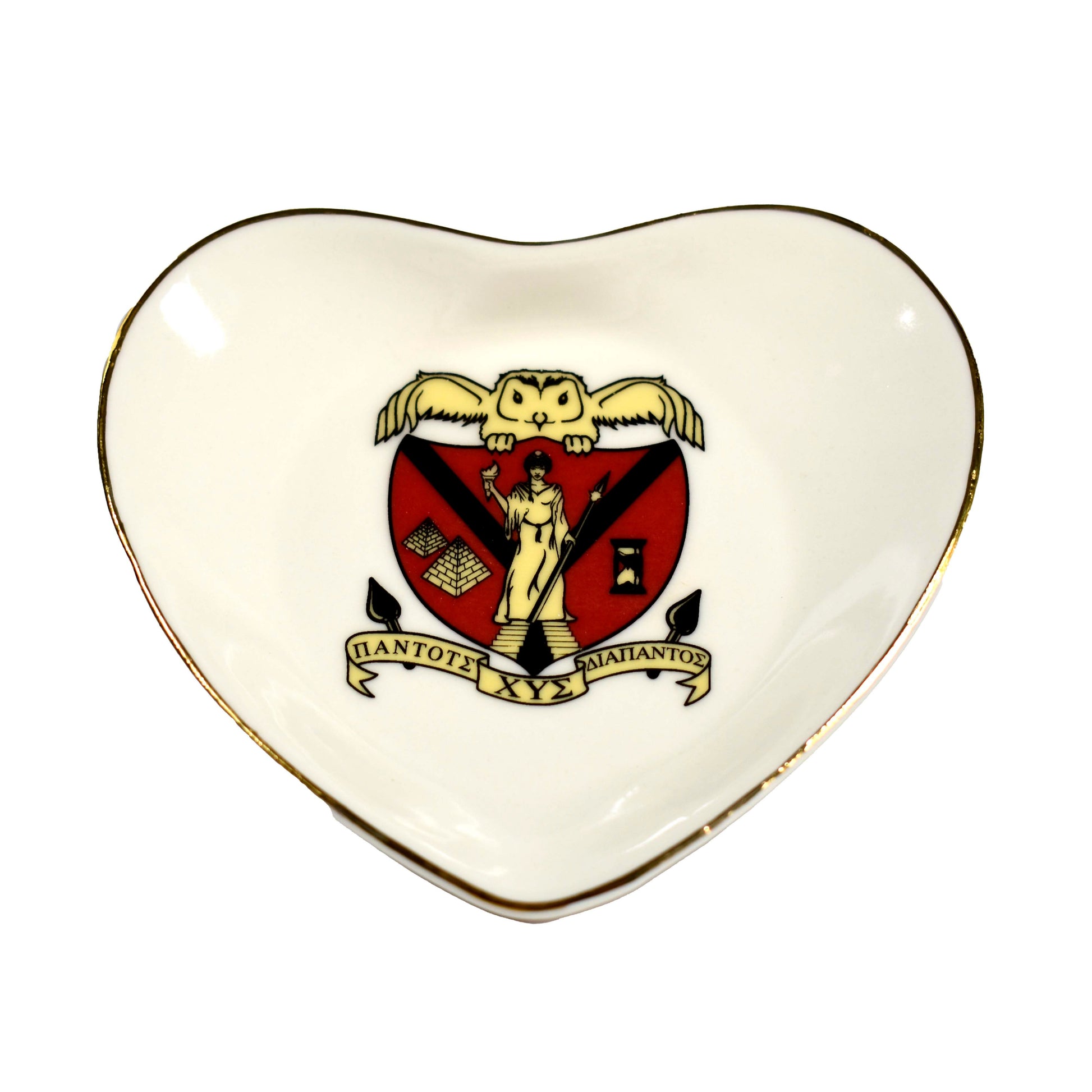 Our Chi Upsilon Sigma ceramic ring dish is the definition of chic with its high gloss finish and sorority name, heart and edge in gold. Great for rings, jewelry, keys or trinkets. Perfect for home or office!