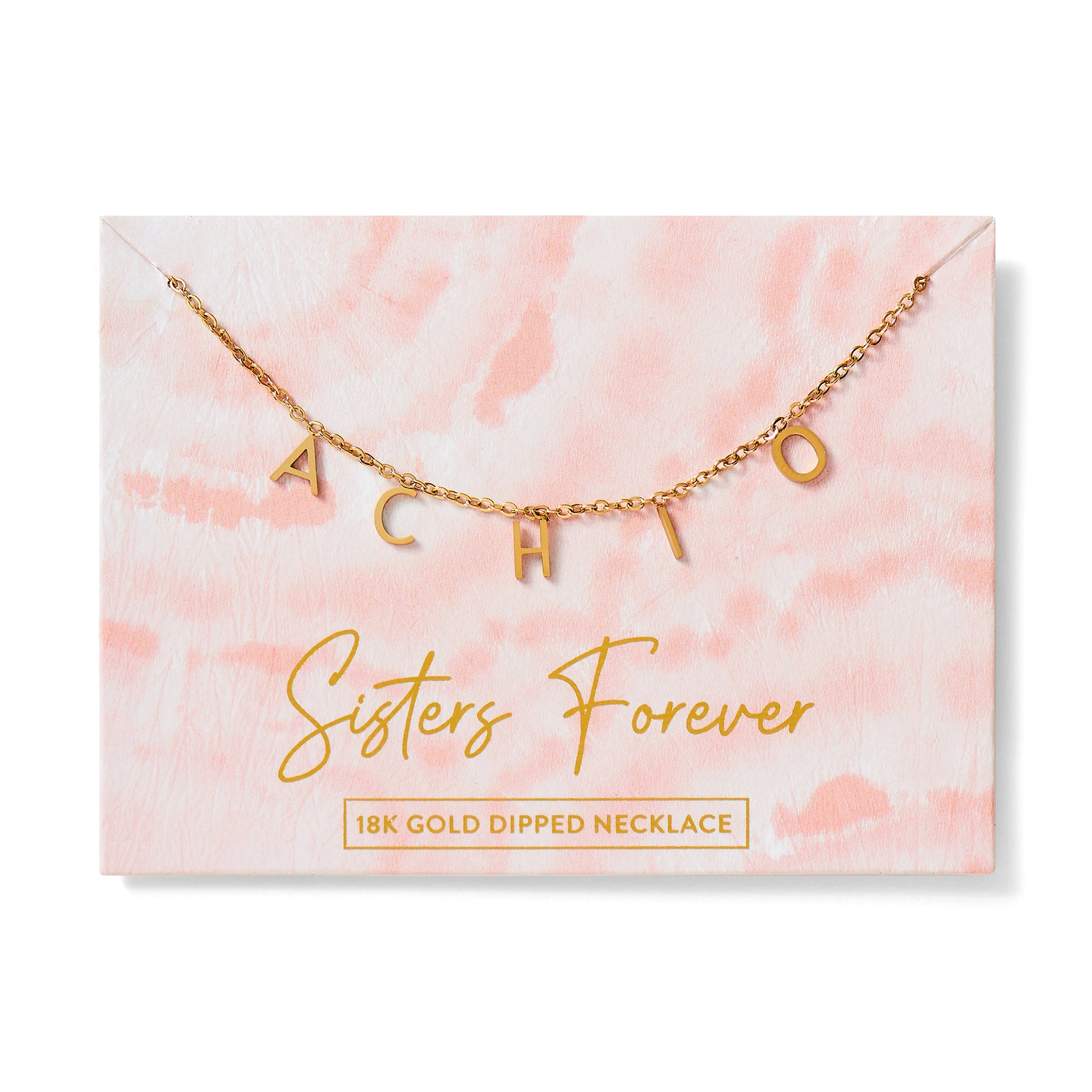 The perfect gift of Sisterhood! Our Sisters Forever Sorority Name necklace features your sorority name or nickname dipped in 18k gold! Perfect for a bid day gift, big little gift or a treat for yourself!