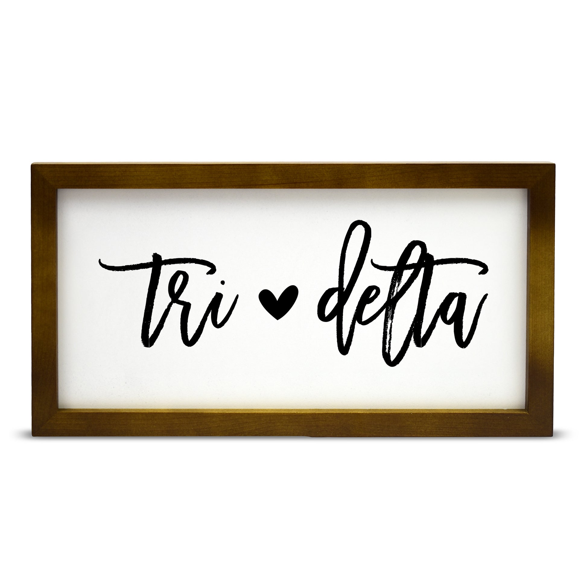 Add Sorority Spirit to your décor with our Sorority Script Large Wall Art! Each wooden sign features a brushstroke script with heart detailing on canvas and bordered with a wooden frame. A great item for yourself or to give as a gift, our wooden sign makes the perfect statement piece for your dorm or sorority house!