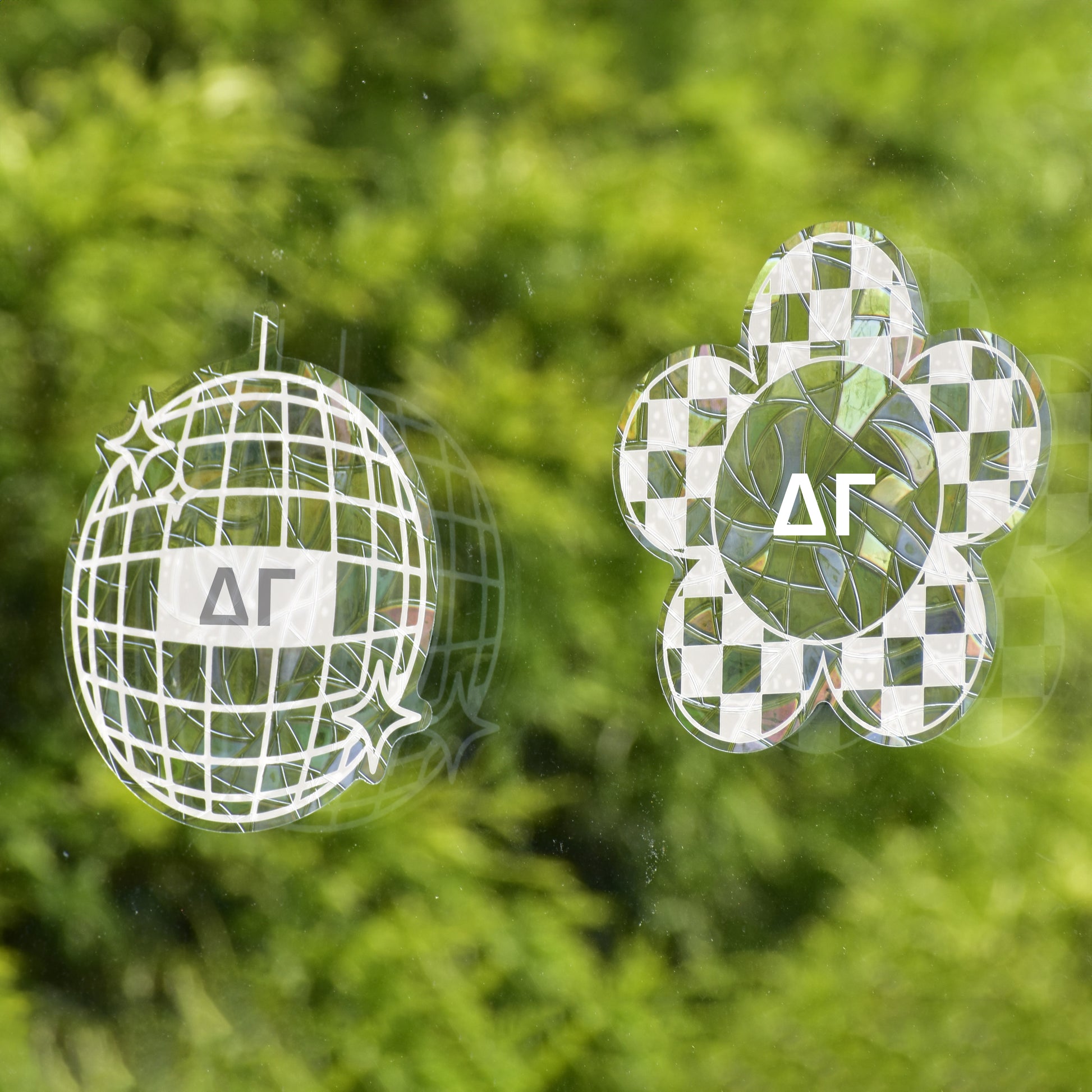 Delta Gamma Suncatcher Decals- Set of 2: Flower & Disco Ball