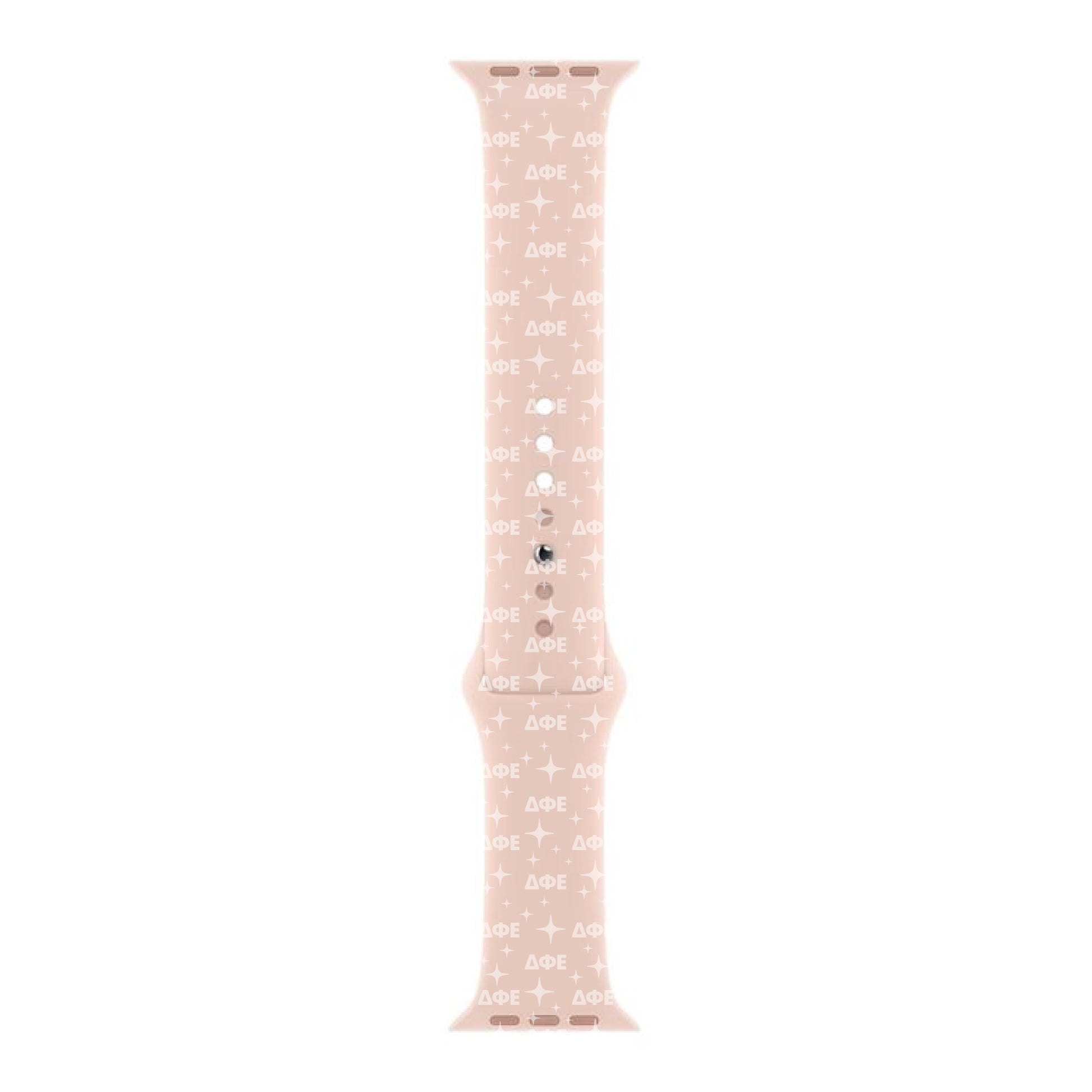 Represent Delta Phi Epsilon sorority in style with our brand new Silicone Smart Watch Band! Each band is embossed with your sorority's letters and trendy repeating star pattern. Fully adjustable to your wrist size and easily cleaned due to the durable silicone, our watch band is the perfect accessory to wear year round. The best part? Our bands are the cutest shade of Millennial Pink!