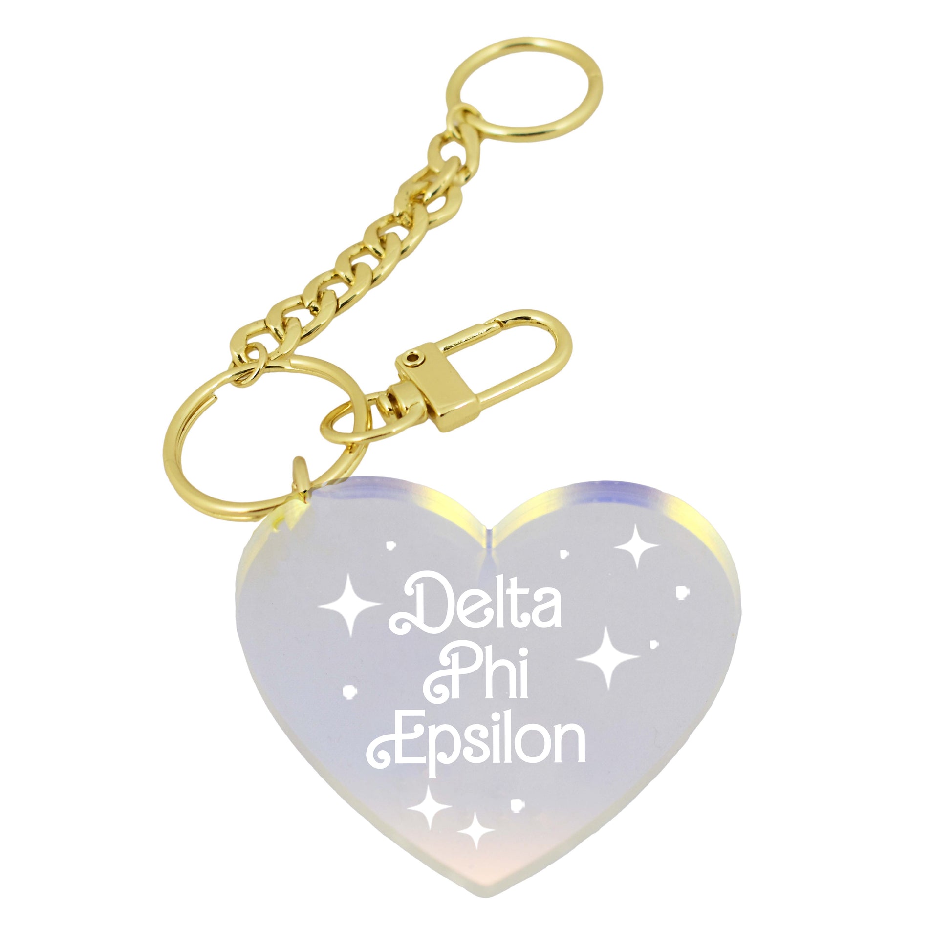 Delta Phi Epsilon Keychain - Iridescent Heart Design