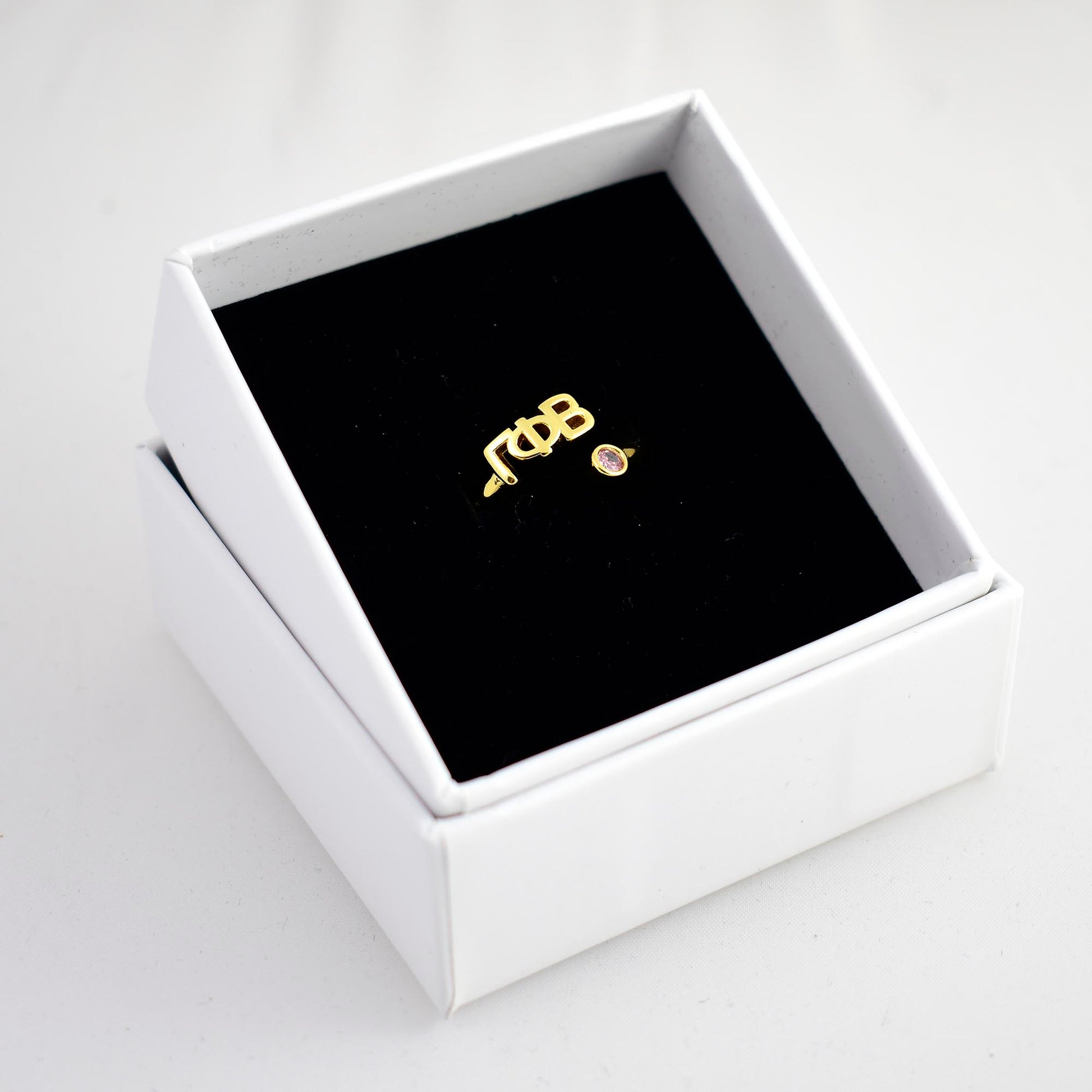 Gamma Phi Beta Ring- Gold Plated with Greek Letters and CZ Gemstone