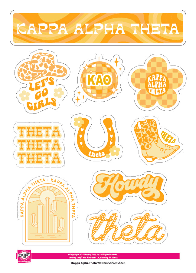 Kappa Alpha Theta Sticker Sheet - Western Disco Design