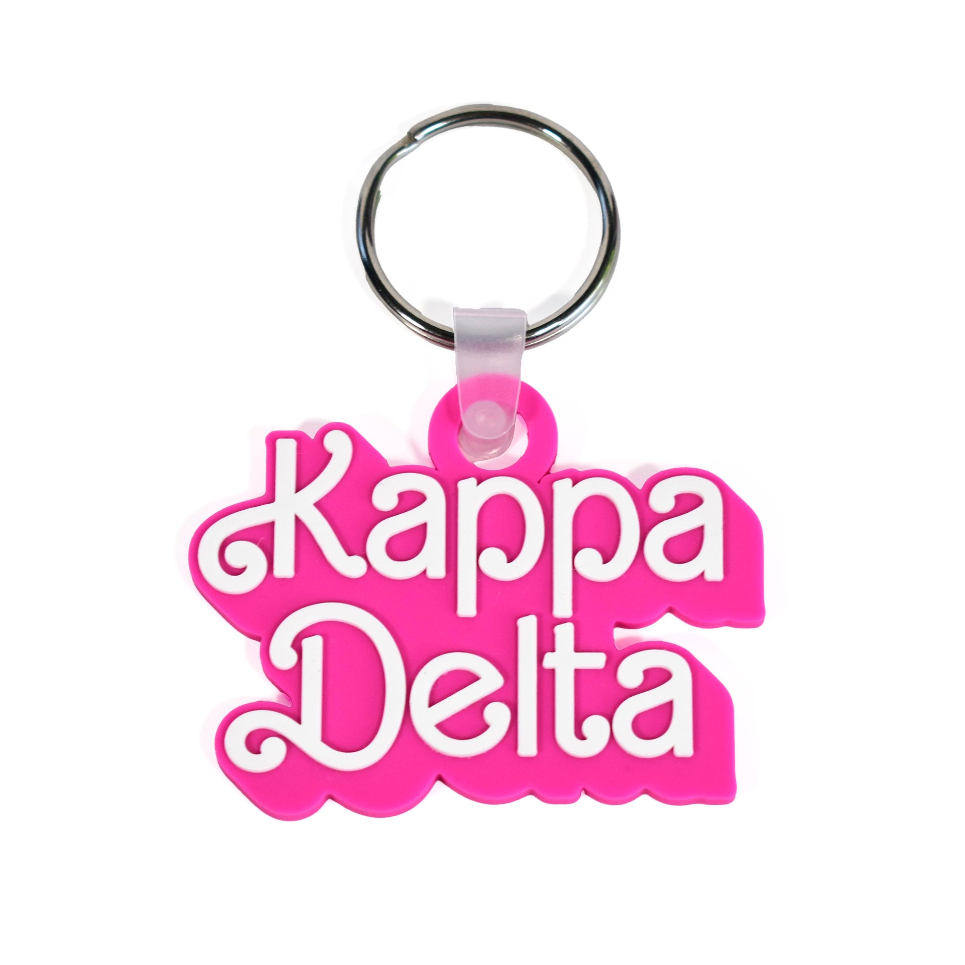 Carry your Kappa Delta pride with you wherever you go! Crafted with soft silicone in bright pink and white, our Officially Licensed Retro Dolly Sorority Name Keychains feature your sorority name in raised lettering with that gorgeous font.