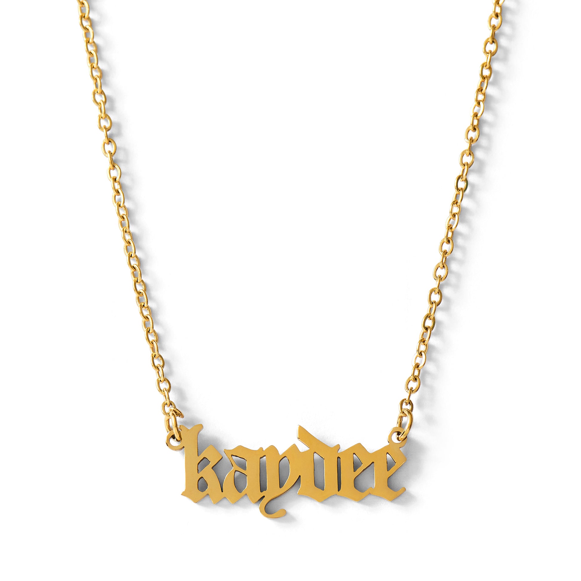 The perfect gift of Sisterhood! Our Sorority Sisterhood Old English necklace features your sorority name or nickname dipped in 18k gold! This necklace comes with a perfectly giftable backer card with gold foil printing. Perfect for gifting. Perfect for a bid day gift, big little gift or a treat for yourself!