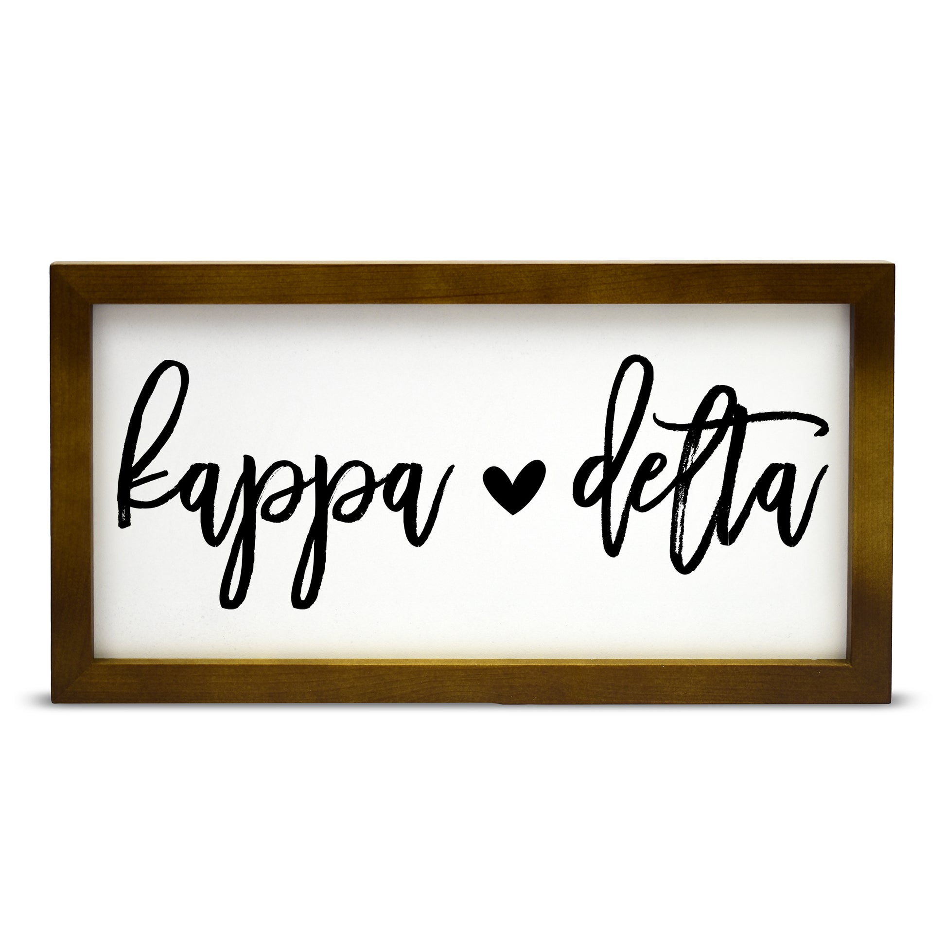 Add Sorority Spirit to your décor with our Sorority Script Large Wall Art! Each wooden sign features a brushstroke script with heart detailing on canvas and bordered with a wooden frame. A great item for yourself or to give as a gift, our wooden sign makes the perfect statement piece for your dorm or sorority house!