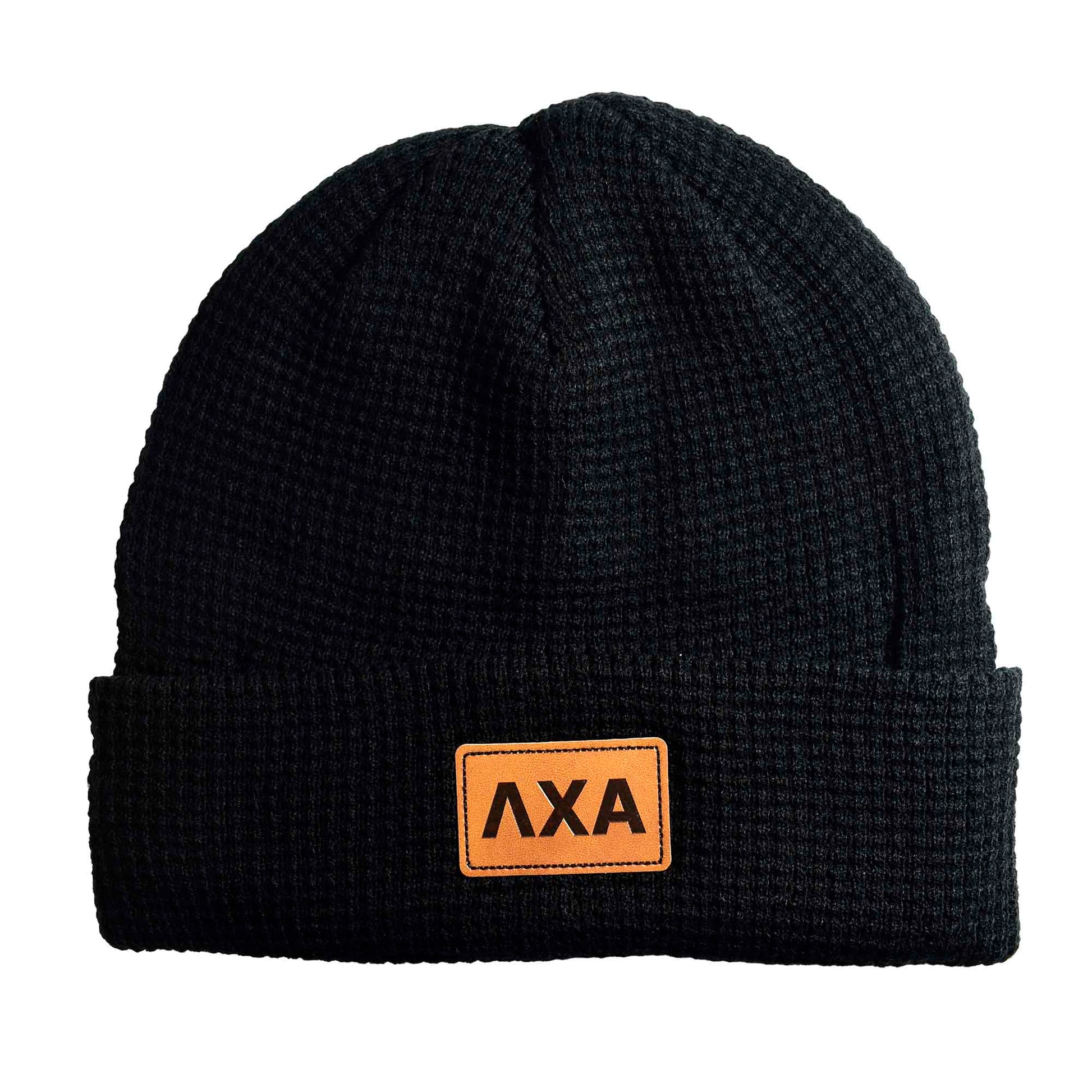 Lambda Chi Alpha Fraternity Beanie Hat - Black Winter Hat w/ Greek Letters Patch