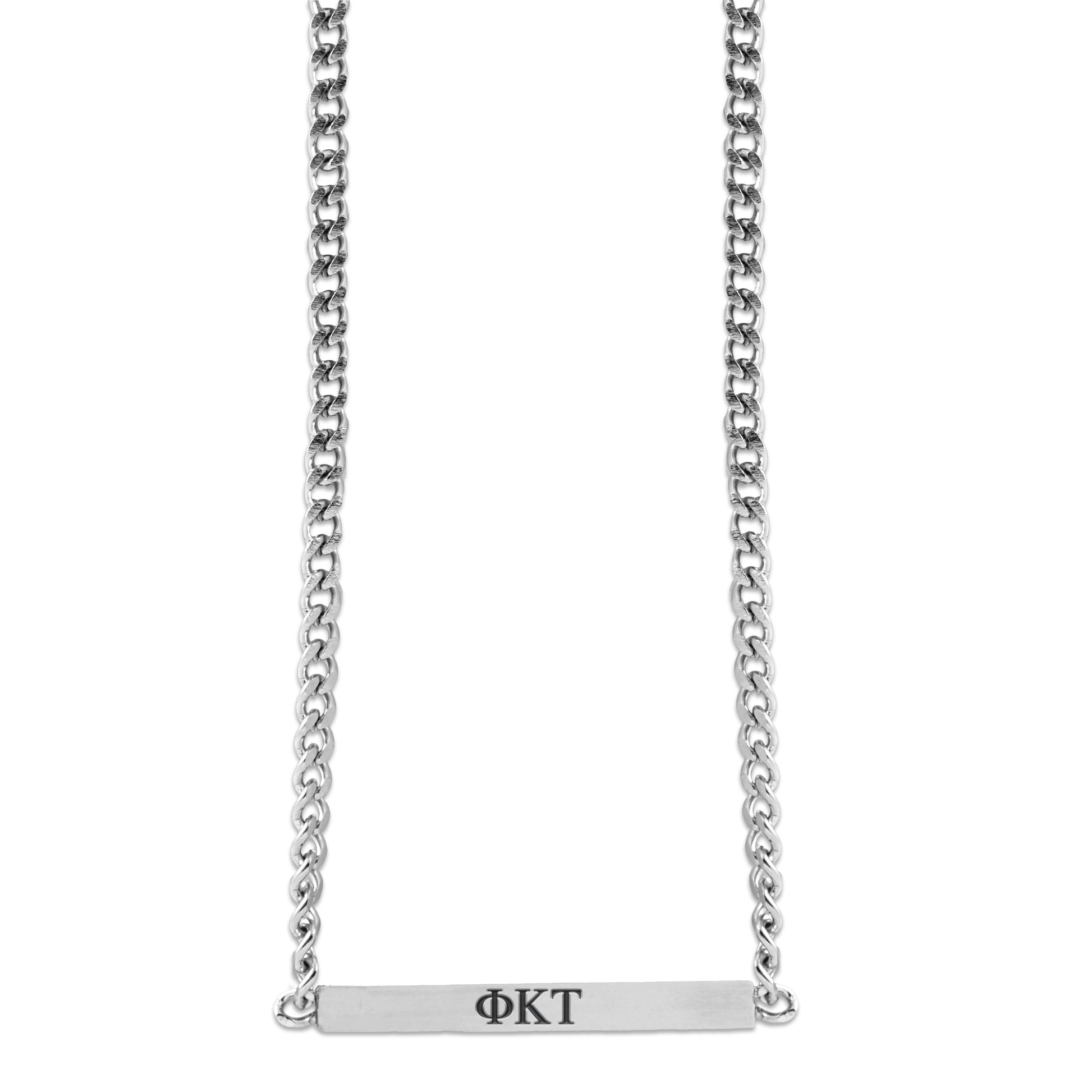 STAINLESS STEEL QUALITY CONSTRUCTION – The stainless steel chain necklace is 18" (with a 2" extension) and securely attaches to the 1 ½” x 3/16” steel bar pendant featuring the engraved fraternity letters. Results in an eye-catching look!