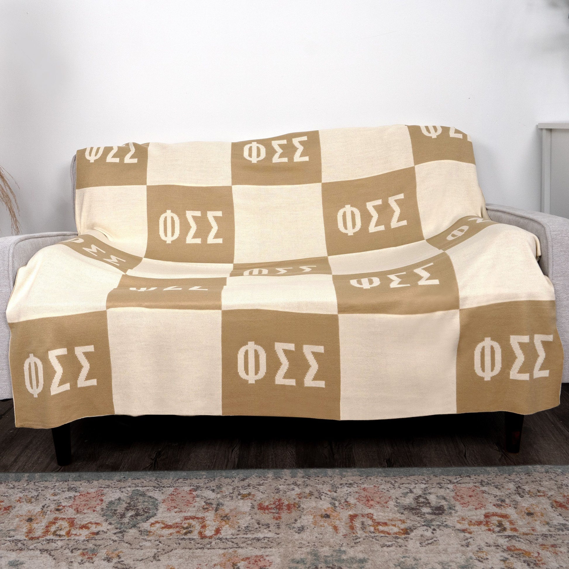 Phi Sigma Sigma Blanket - Acrylic Knit Checkered Blanket