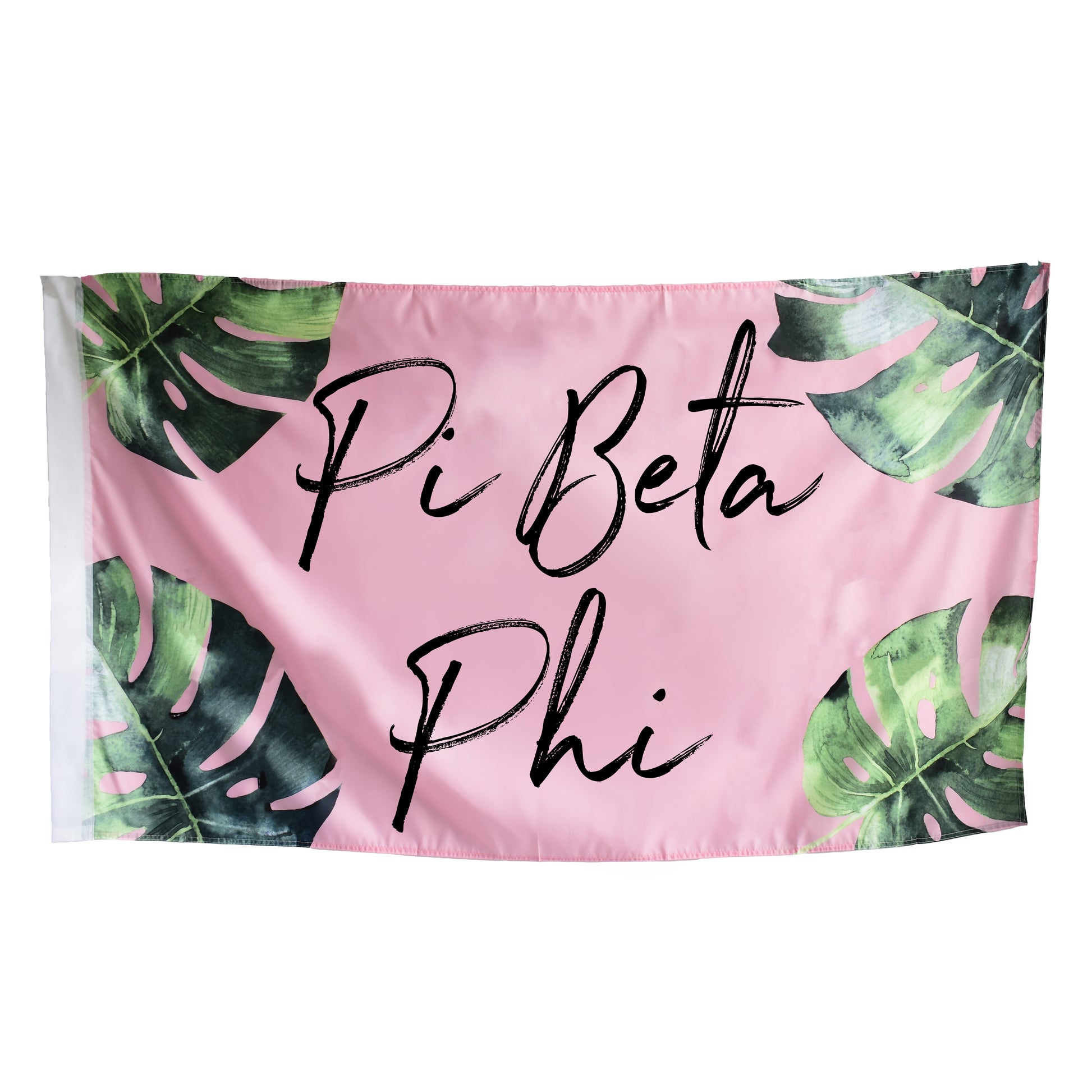 Show your Pi Beta Phi pride anywhere with these brightly colored sorority flags. A generous 60" x 36", constructed of sturdy nylon, they are perfect for indoor and outdoor use. Each sorority has three designs from which to choose: Succulent, Tropical Palm or Retro Design! They are easily wall-mounted but we have also included a convenient pole-sleeve for traditional flag pole use.