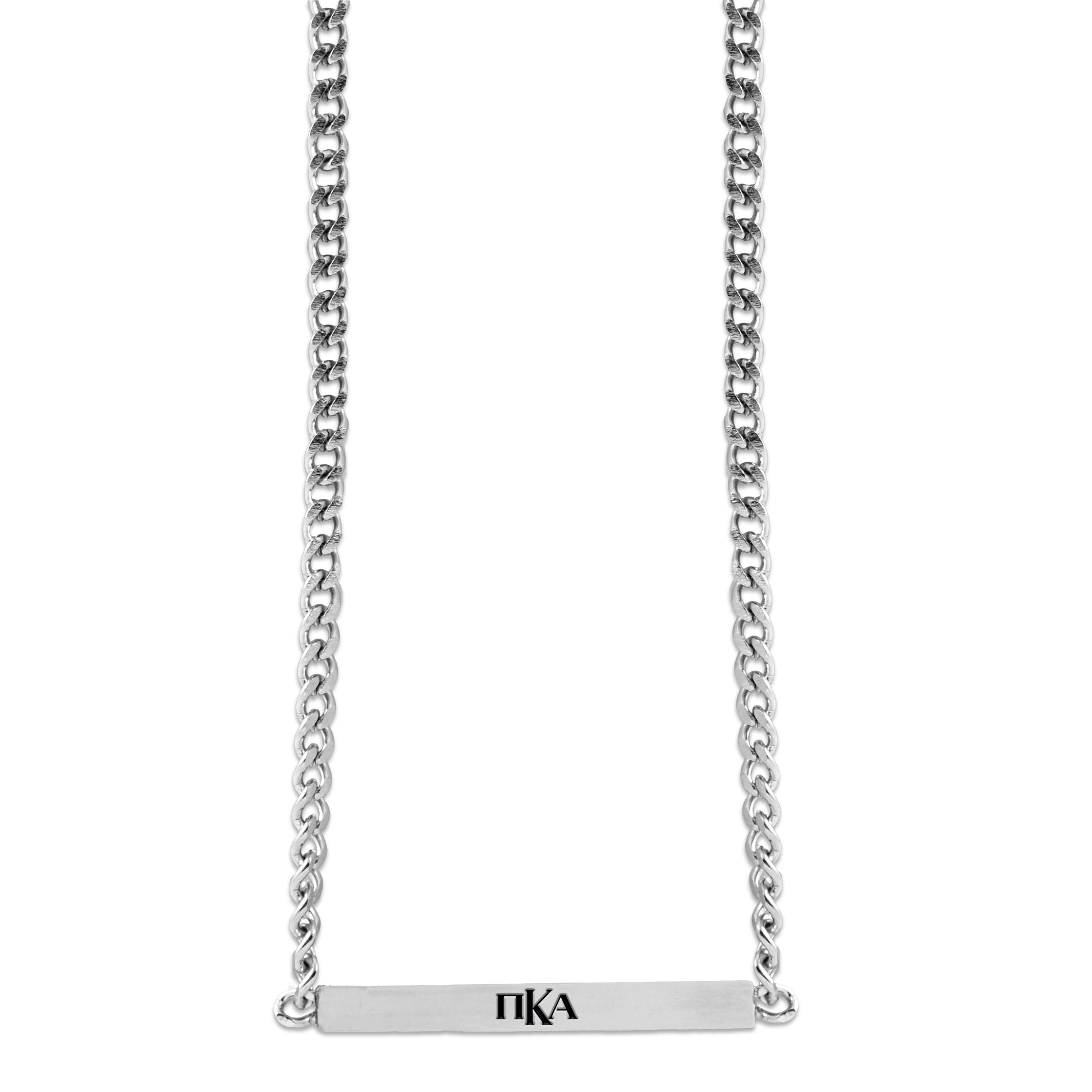 STAINLESS STEEL QUALITY CONSTRUCTION – The stainless steel chain necklace is 18" (with a 2" extension) and securely attaches to the 1 ½” x 3/16” steel bar pendant featuring the engraved fraternity letters. Results in an eye-catching look!
