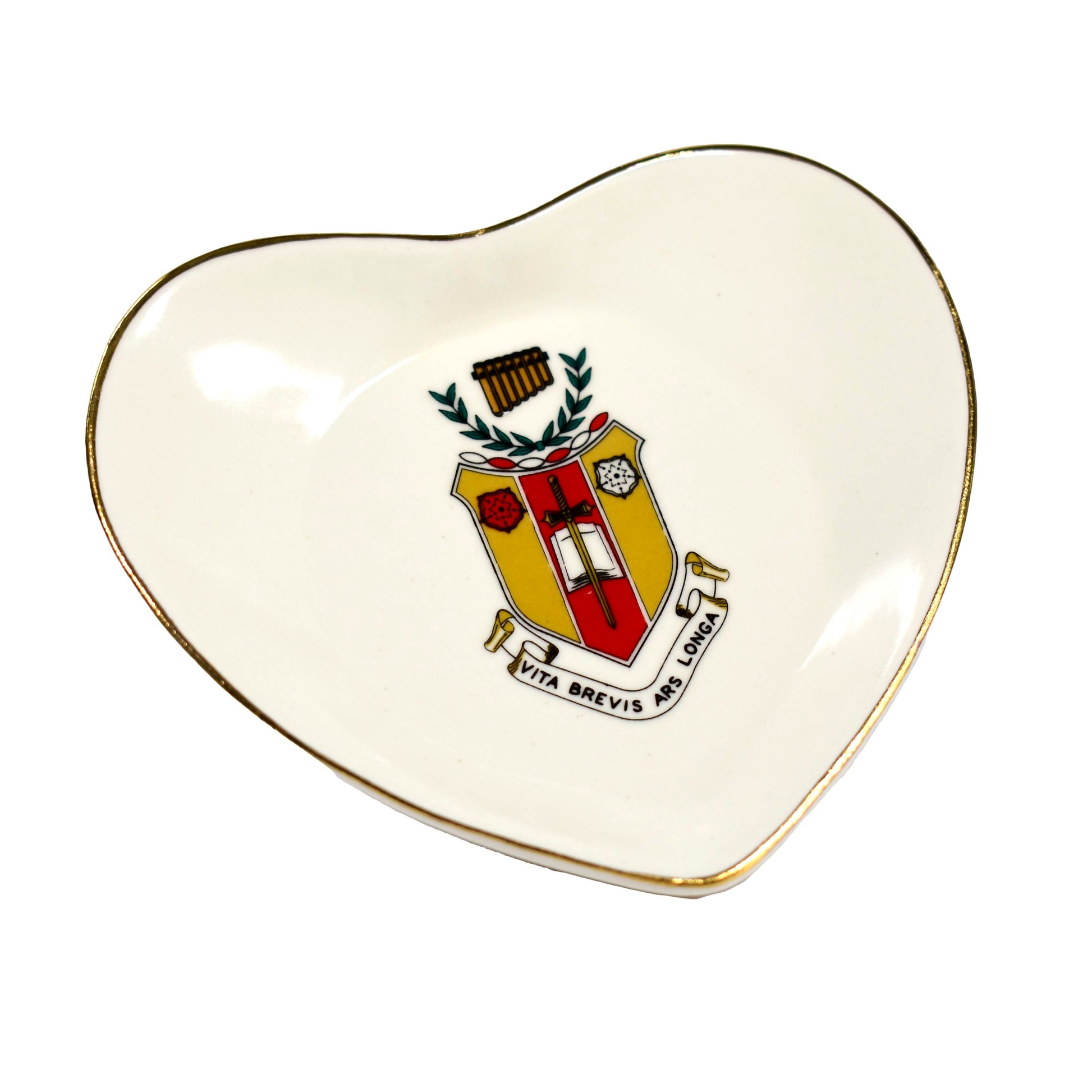 Our Sigma Alpha Iota ceramic ring dish is the definition of chic with its high gloss finish and sorority name, heart and edge in gold. Great for rings, jewelry, keys or trinkets. Perfect for home or office!