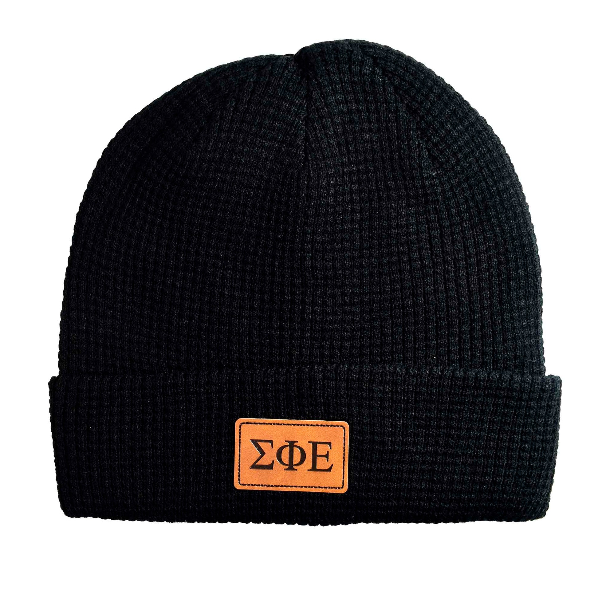 Sigma Phi Epsilon Fraternity Beanie Hat - Black Winter Hat w/ Greek Letters Patch