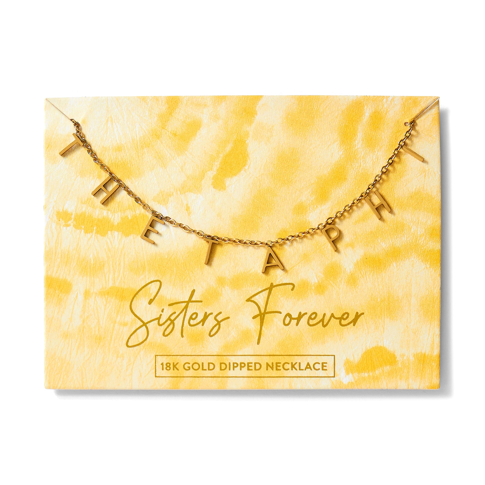 The perfect gift of Sisterhood! Our Sisters Forever Sorority Name necklace features your sorority name or nickname dipped in 18k gold! Perfect for a bid day gift, big little gift or a treat for yourself!