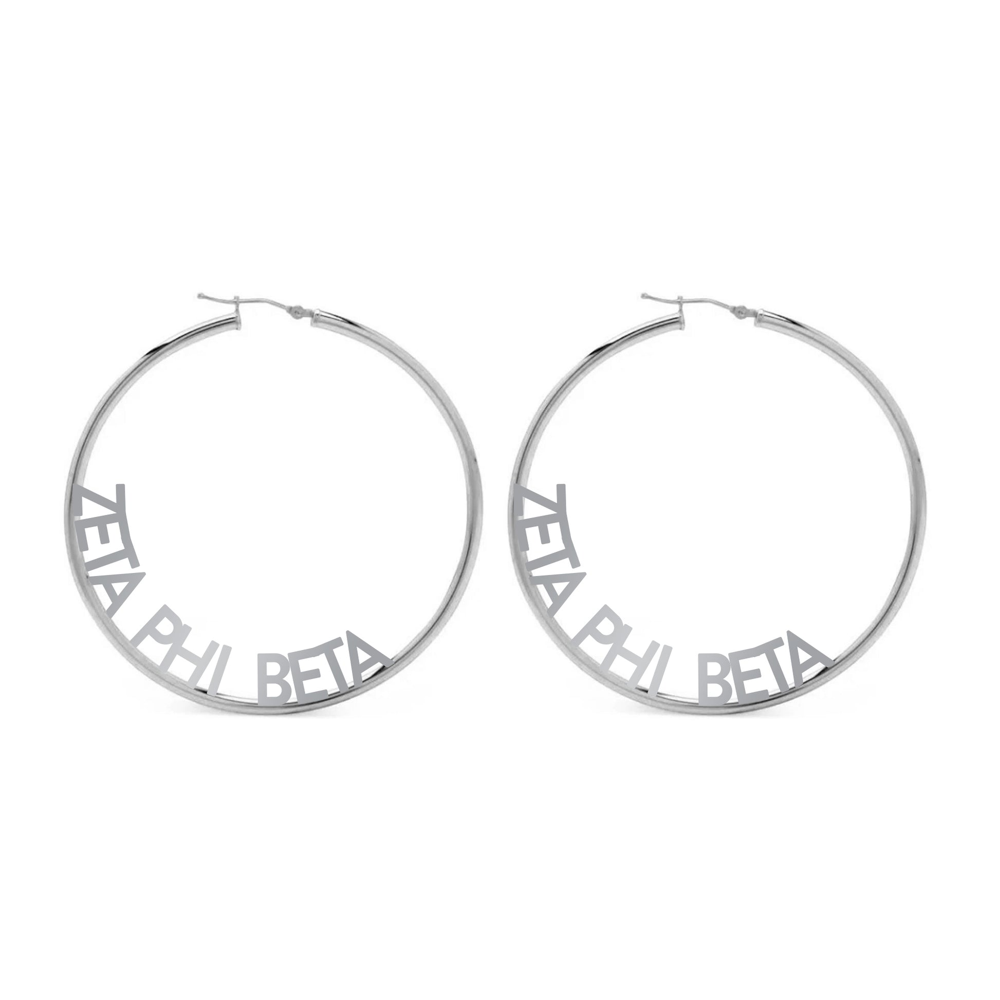 Zeta Phi Beta Silver Hoop Earrings- Name Design