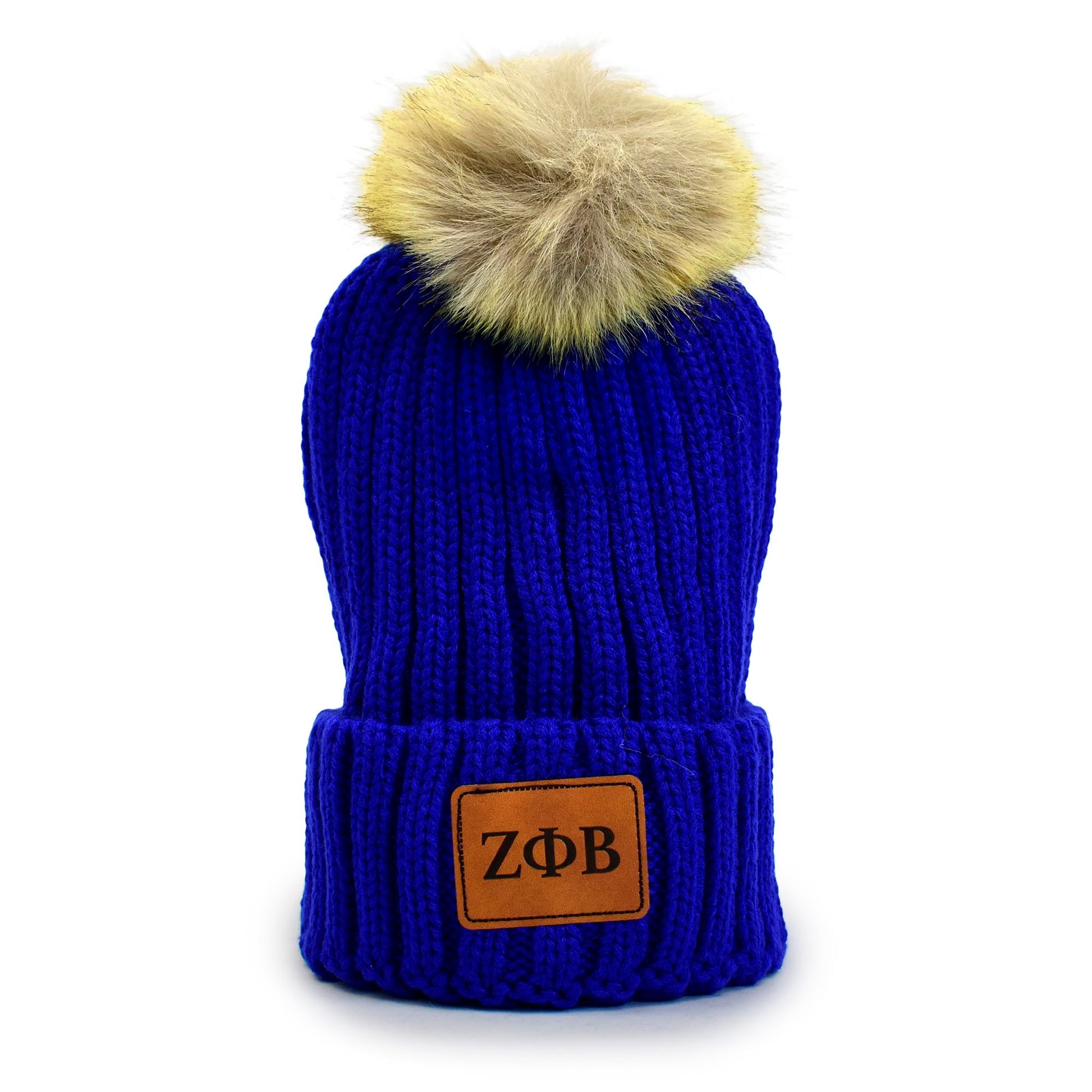 Represent in style with our Sorority Pom Pom Beanie Hat! Our knit hat is color specific to your organization and features a vegan leather patch embossed with your sorority letters. The super fluffy fur pom pom on top makes it the perfect trendy accessory to show off your spirit during the fall and winter months!