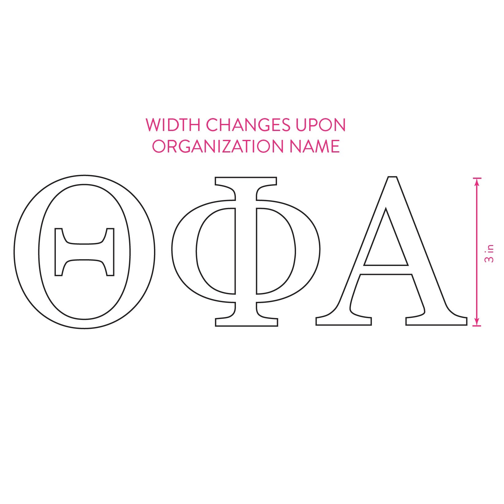 Each window sticker measures either 8" x 3" for three-letter organizations or 5.25" x 3" for two-letter groups.