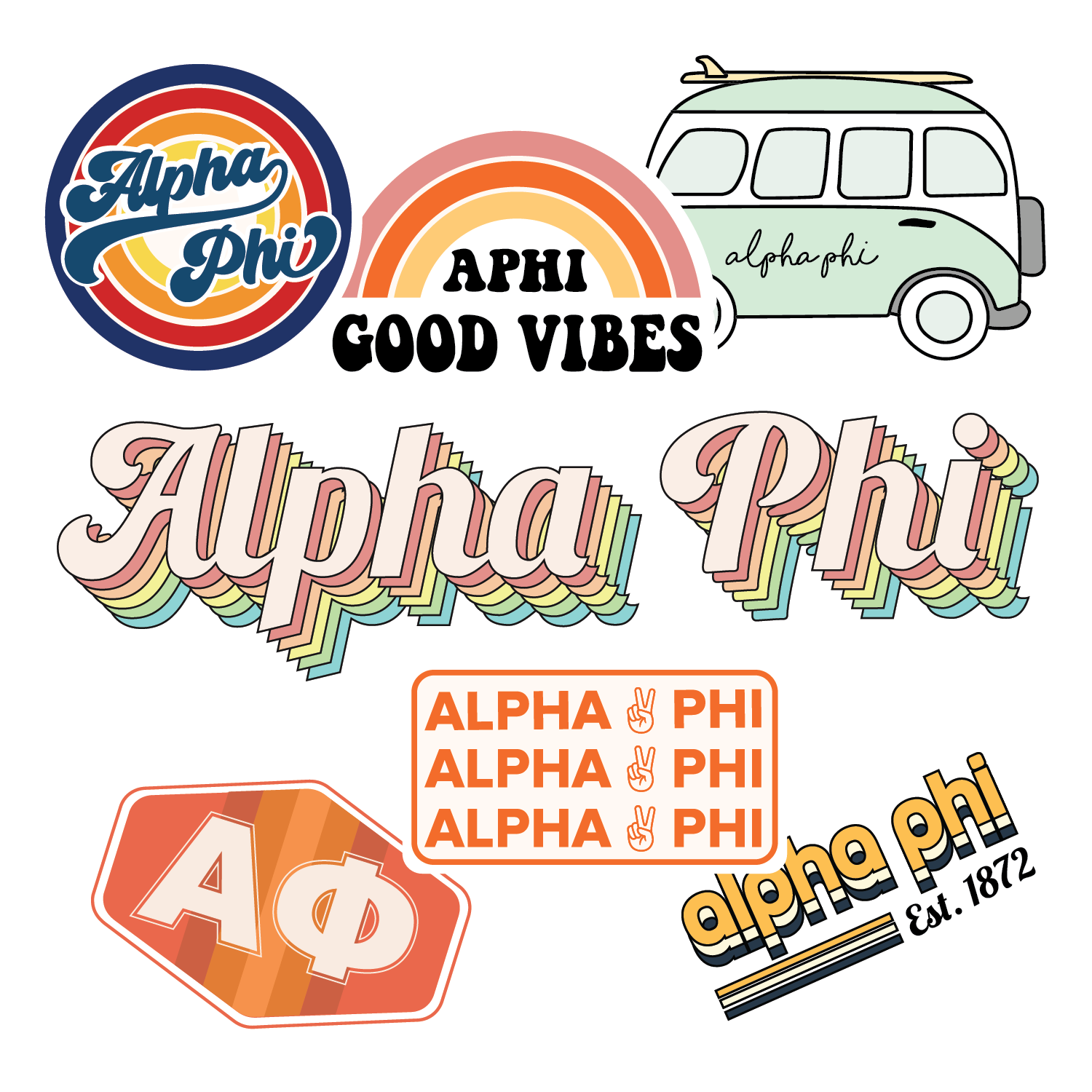Get your "Greek On" with these high quality, Super Groovy Retro Theme stickers! Each sheet contains 7 stickers unique to your sorority. Printed on sturdy vinyl, they are easily removed or repositioned leaving NO STICKY RESIDUE! These stickers are the perfect way to show your sorority spirit - display them on a notebook, computer, or almost any clean dry surface, the possibilities are endless! Our officially licensed stickers make great gifts for sisters and are great to stock up on for special events or rush week.