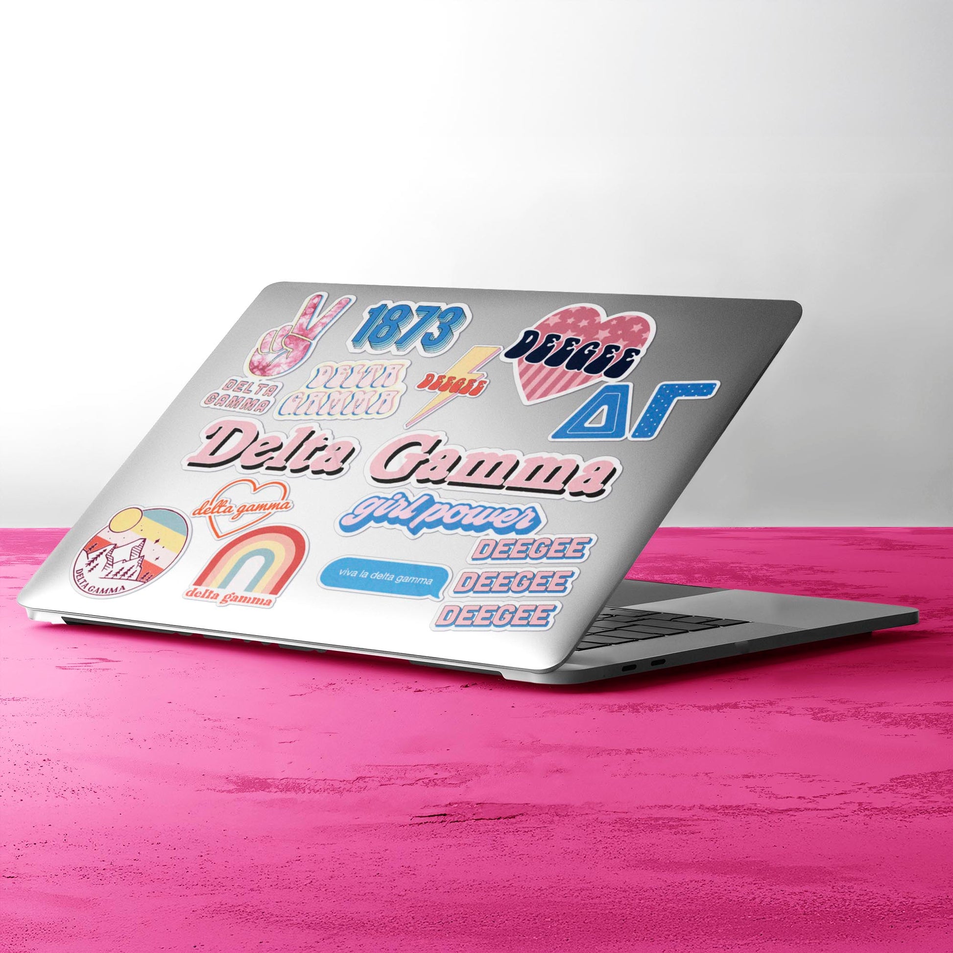 Each sheet contains 15 stickers! Printed on sturdy vinyl, they are easily removed or repositioned leaving NO STICKY RESIDUE! These stickers are the perfect way to show your sorority spirit - display them on a notebook, computer, or almost any clean dry surface, the possibilities are endless! Our officially licensed stickers make great gifts for sisters and are great to stock up on for special events or rush week. 12” x 8.5” sheet, 15 stickers.