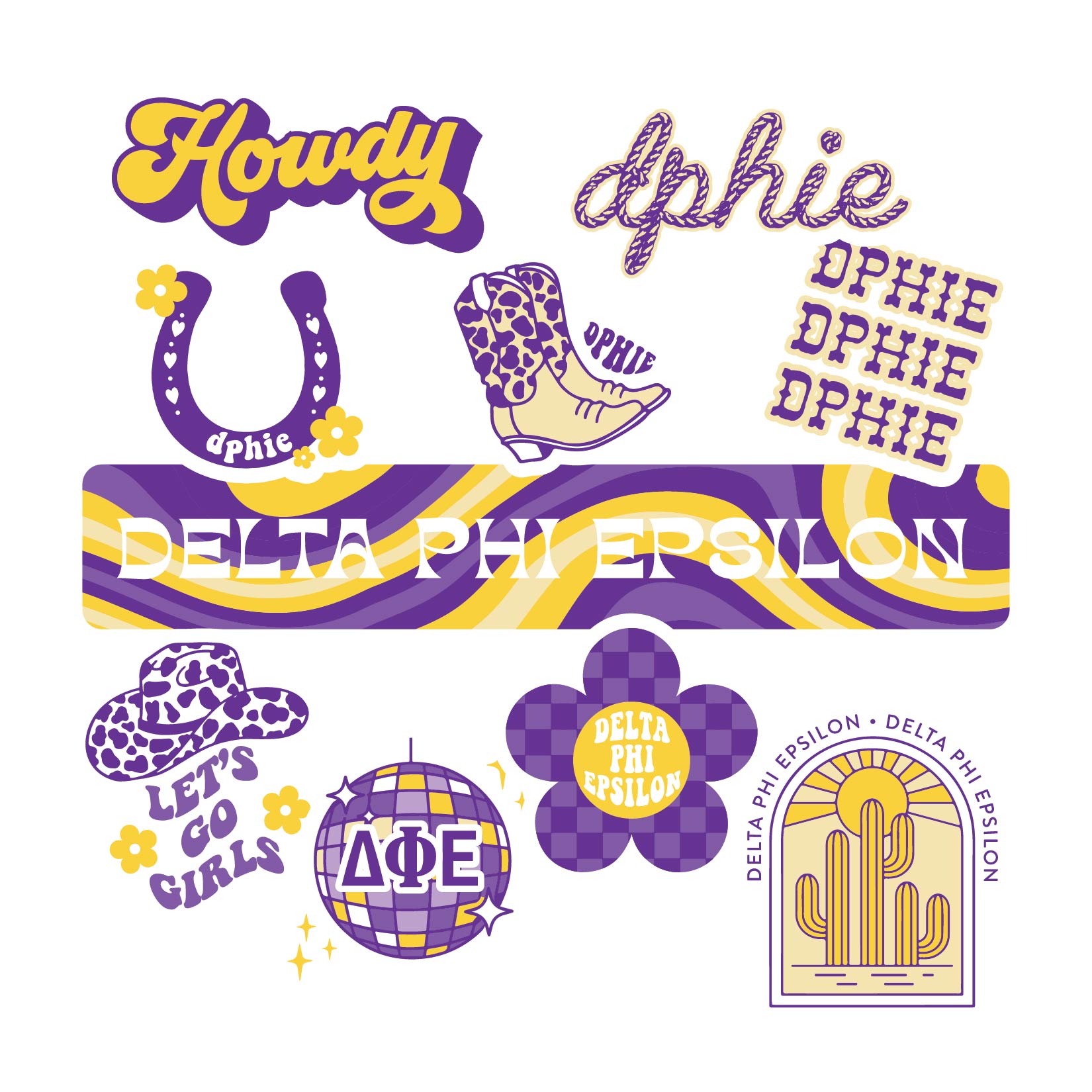 Delta Phi Epsilon Sticker Sheet - Western Disco Design