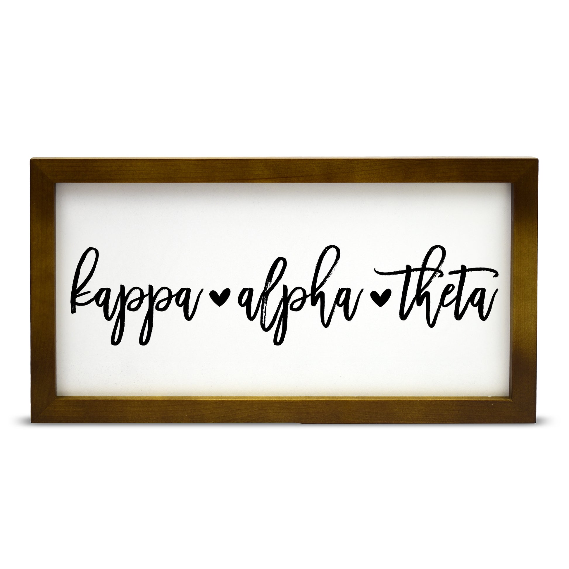 Add Sorority Spirit to your décor with our Sorority Script Large Wall Art! Each wooden sign features a brushstroke script with heart detailing on canvas and bordered with a wooden frame. A great item for yourself or to give as a gift, our wooden sign makes the perfect statement piece for your dorm or sorority house!