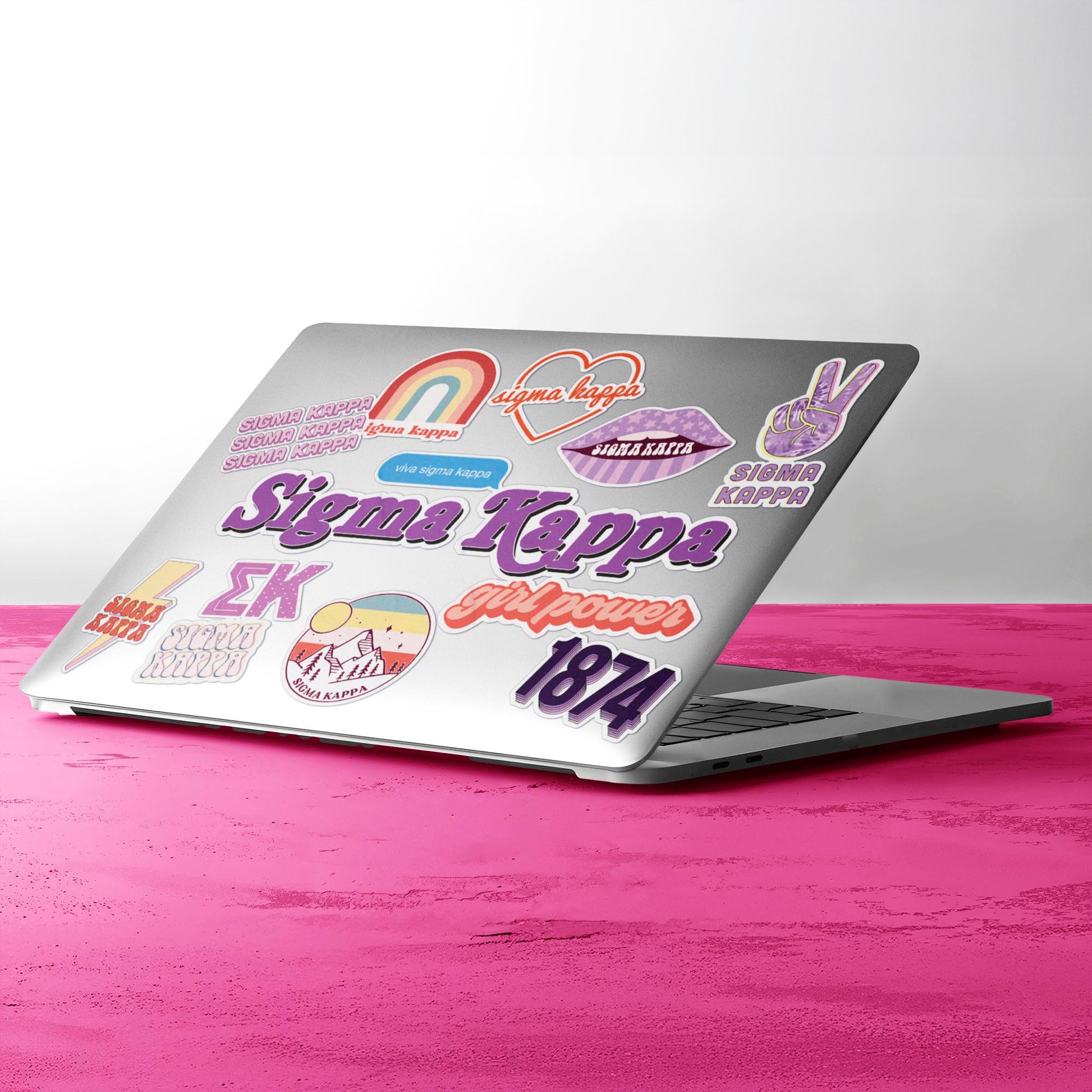 Each sheet contains 15 stickers! Printed on sturdy vinyl, they are easily removed or repositioned leaving NO STICKY RESIDUE! These stickers are the perfect way to show your sorority spirit - display them on a notebook, computer, or almost any clean dry surface, the possibilities are endless! Our officially licensed stickers make great gifts for sisters and are great to stock up on for special events or rush week. 12” x 8.5” sheet, 15 stickers.