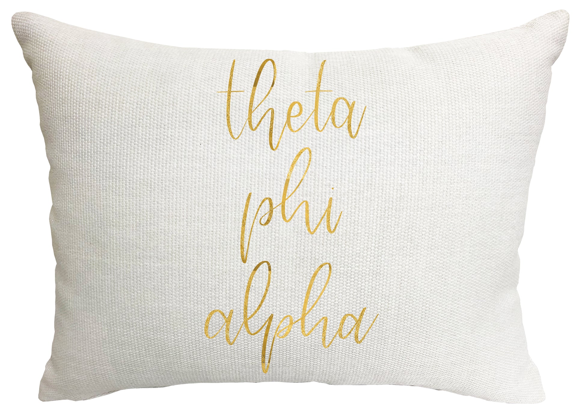 Go Greek with our Theta Phi Alpha Throw Pillows; perfect for your dorm, bedroom or sorority suite!